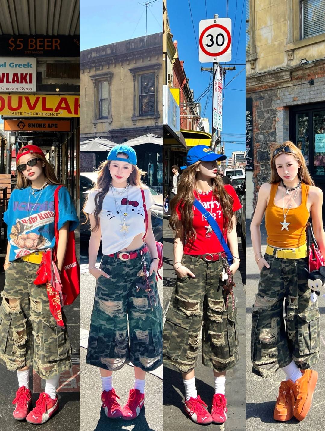 复古街头迷彩七分裤,直接把七分裤的帅气拉满。七分裤的利落剪裁恰好露出纤细脚踝,在视觉上拉长腿部线条,搭配圆头德训鞋与亮色系上衣,吸睛穿搭碰撞出不羁态度。迷彩七分裤的穿搭无论是上街拍照或是朋友聚会,都可以轻松演绎独特帅气的复古街头型格。