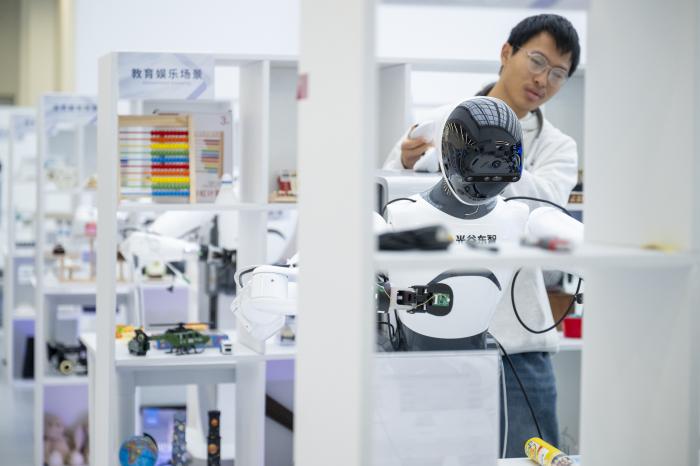 11月6日,在湖北人形机器人创新中心,人形机器人数据采集员在进行数据采集工作。新华社记者 伍志尊 摄