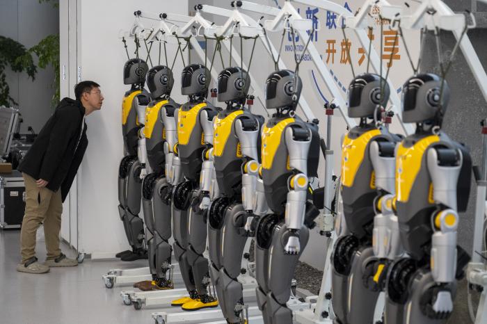 11月6日,观众在湖北人形机器人创新中心参观。新华社记者 伍志尊 摄