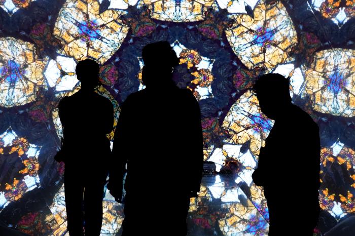 11月6日,一名参观者路过华工科技激光科技馆内由激光技术二次创作的绘画作品。新华社记者 戴明轩 摄