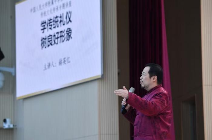 主讲老师、历史文化学博士赫英忆以“学传统礼仪 树良好形象”为主题,结合学校长期以来重视传统文化教育的特色,将阅读与礼仪教育有机融合。