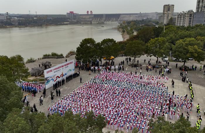 研学团开营仪式在丹江口水库大坝下游的水之源广场举行。