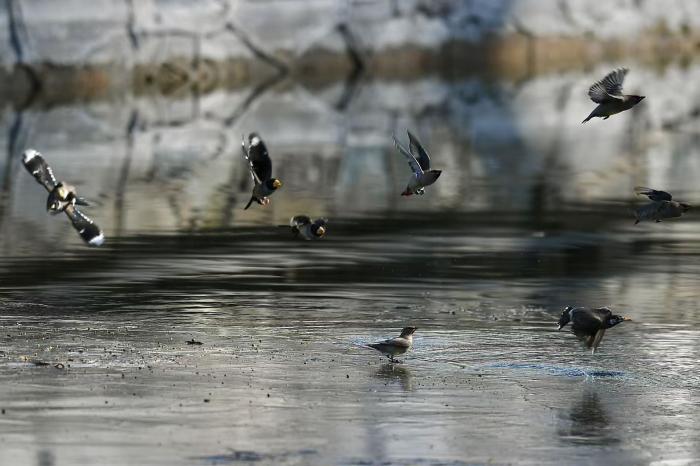 记者在北海公园看到,成群太平鸟聚集在枝头,或啄食浆果,或嬉戏翻飞,色彩艳丽的羽毛在阳光下格外夺目。