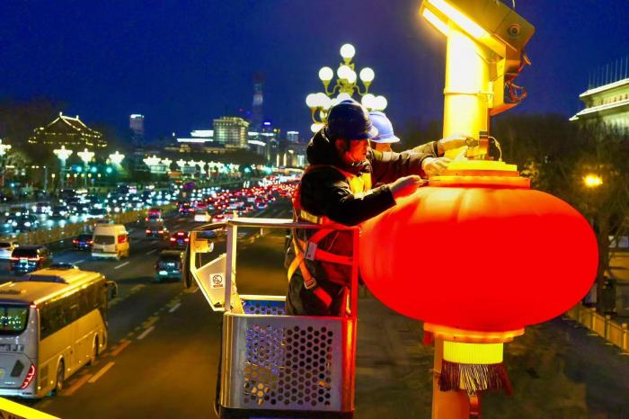 2月10日傍晚,北方的传统节日小年夜,长安街上华灯初上。今年长安街景观布置重点依然聚焦核心路段,照明中心通过天然光采集系统实时监测城六区路面光照度变化,随时做好精细化开关灯准备,既让新春夜景的氛围感拉满,又为市民、游客的出行筑牢安全照明屏障,用温暖的灯光守护新春团圆路。