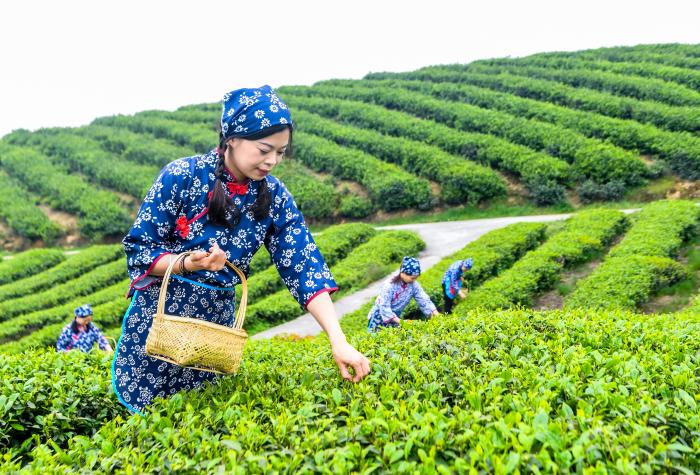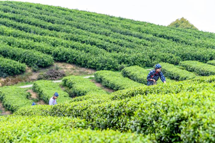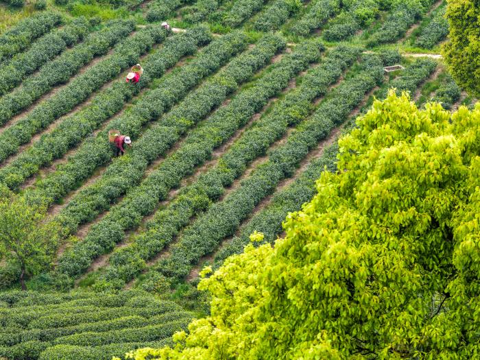 近日,随着气温回暖,位于重庆市荣昌区安富街道的荣安三月茶叶专业合作社茶园迎来春茶采摘旺季,茶农们穿梭在茶垄间采摘春茶。