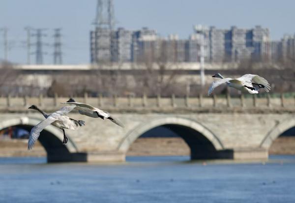 美丽北京|卢沟桥畔迎来野生白天鹅
